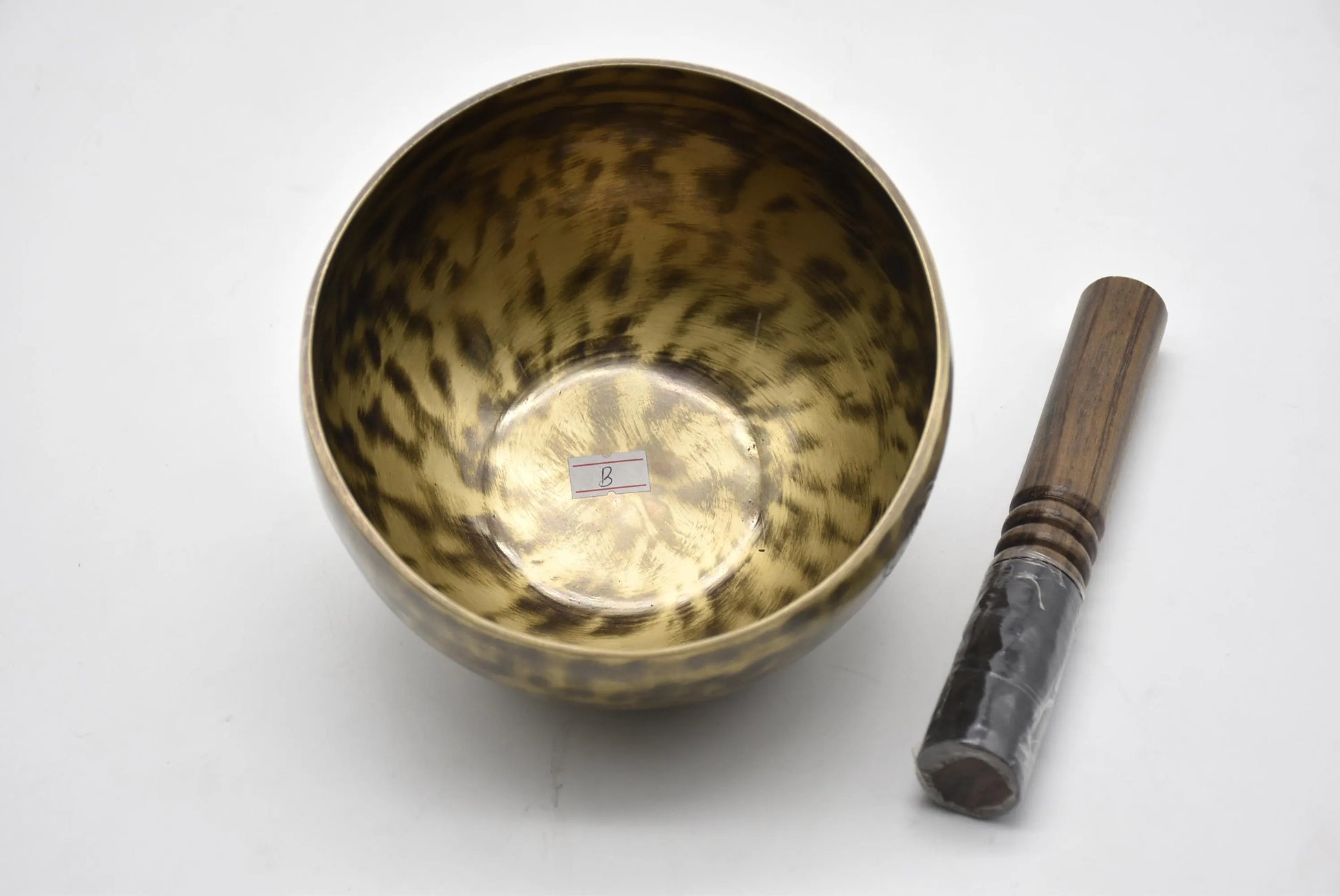 This artisan Tibetan singing bowl is tuned to the B note, aligning with the Crown Chakra to promote spiritual awakening, divine connection, and inner tranquility. Perfect for sound healing, yoga, and meditation, it creates a sacred environment for profound spiritual and emotional harmony.