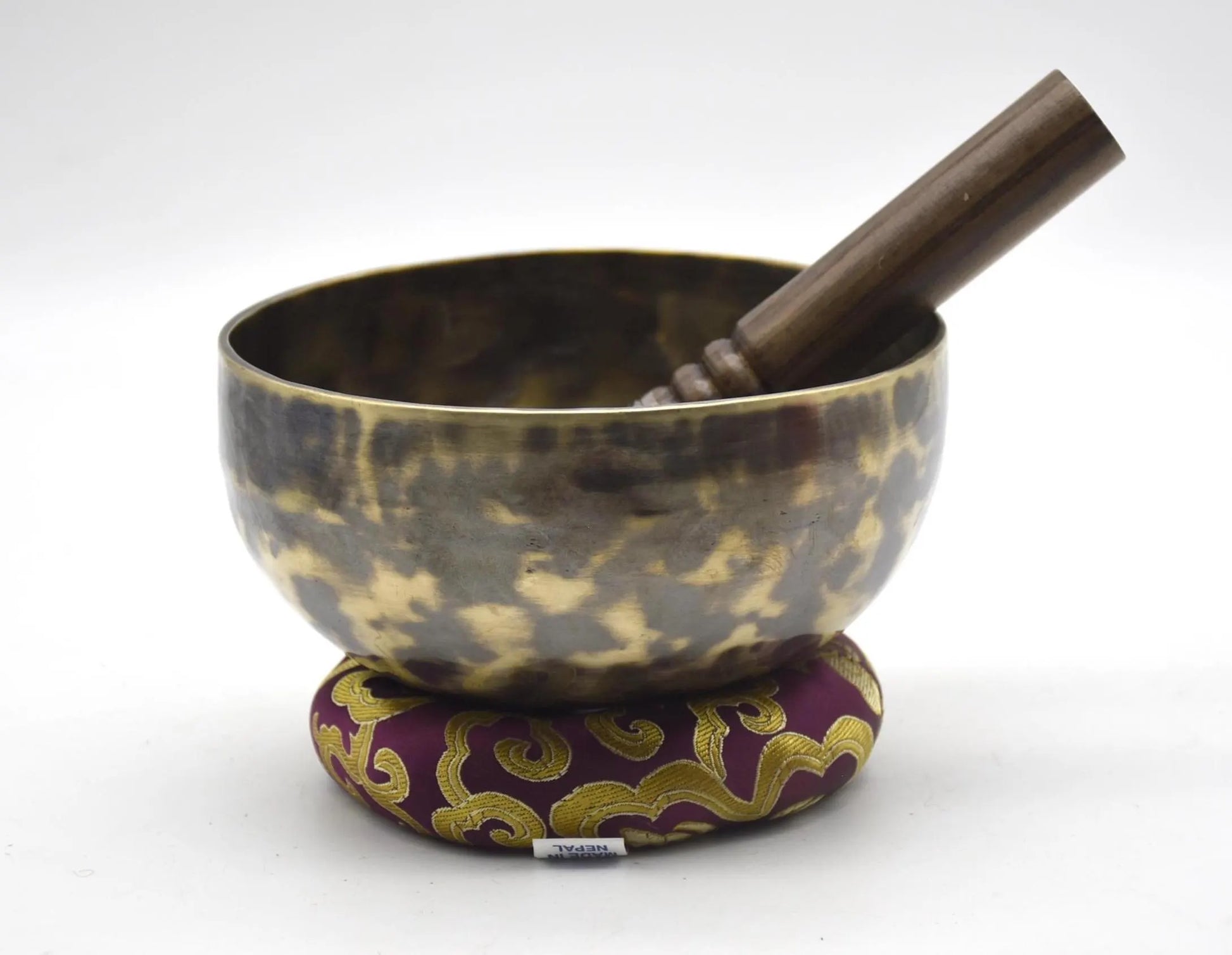 Crafted from a sacred blend of seven metals—gold, silver, copper, iron, tin, lead, and zinc—this singing bowl embodies celestial harmony, with each metal symbolizing the sun, moon, and planets. Perfect for meditation, sound therapy, or chakra balancing, it produces resonant, calming tones that foster a serene atmosphere.
